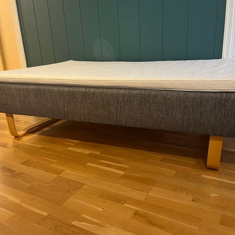 Odel Foss rammemadrass 90x200 seles. Sengen er brukt til gjesteseng så kun brukt noen få ganger. Fremstår som ny. Må hentes på Inndyr.