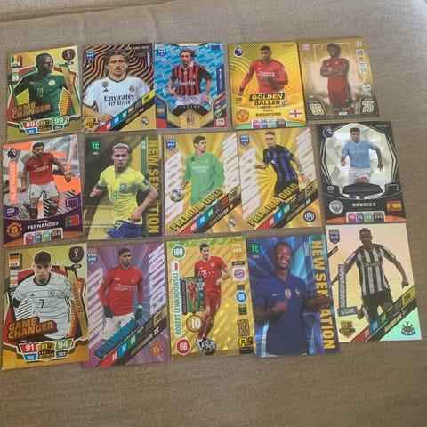 Samling med fotballkort av Cristiano Ronaldo. Kortene viser spilleren i ulike klubber og landslag, fra forskjellige sesonger og serier. Egnet for samlere av fotballkort og spesielt for de som samler på Cristiano Ronaldo-relaterte objekter.