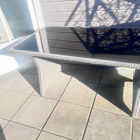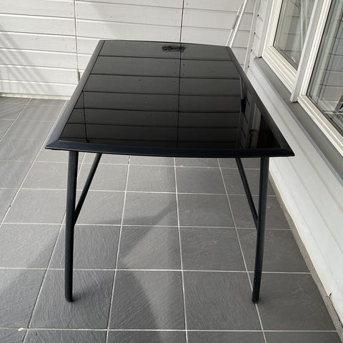Det er små rustflekker på hagebordet , men disse er ikke sjenerende.