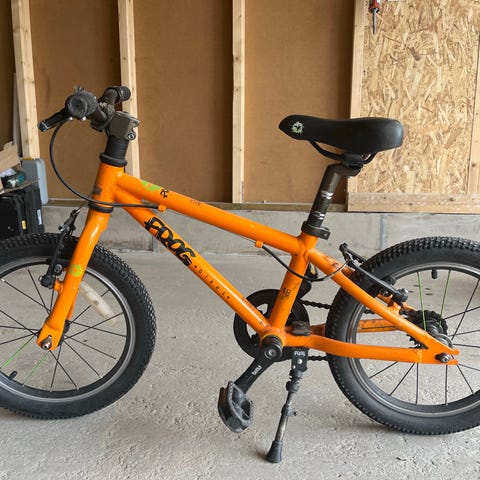 Fin rød Frog 48 barnesykkel med 16" hjul. Meget fin og god kvalitetssykkel i god stand. Lett sykkel som ruller godt.