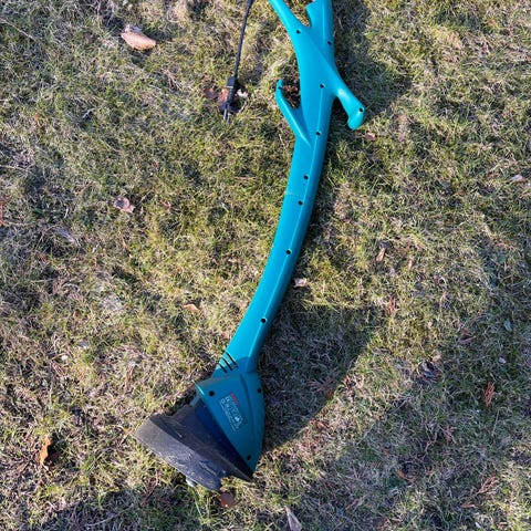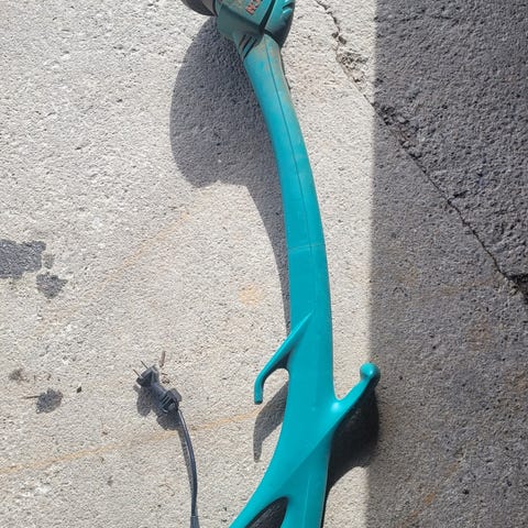 Bosch Easytrim gresstrimmer i grønn farge. Elektrisk kantklipper for trimming av gress rundt kanter, bed og vanskelig tilgjengelige områder i hagen. Modellen har buet skaft og tohåndsgrep for bedre kontroll under bruk. Trimmerhodet er utformet for bruk med trimmertrådspole. Egnet til vanlig vedlikehold av plen og mindre grøntarealer rundt hus og hage.