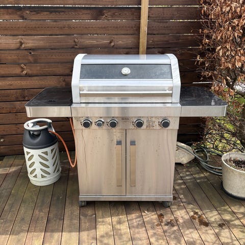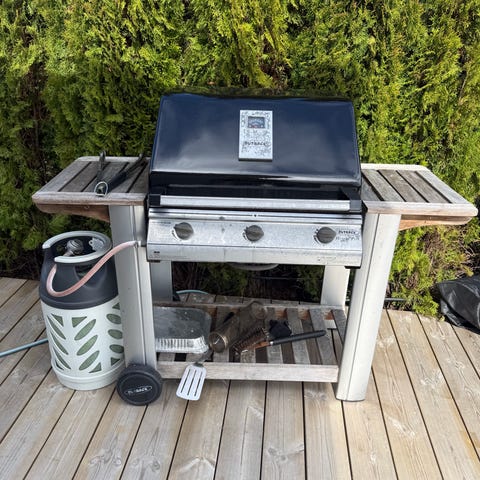 Av ting som jeg vet må fikses så er den ene døra løs, sidegrillen delvis løsnet og noe ujevne flammer.
