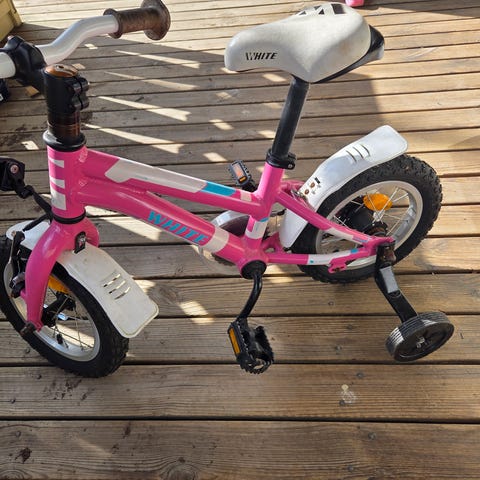 BITS Super 12 barnesykkel med 12" hjul. Sykkelen har ramme i hvit farge med rosa detaljer, rette styreholker og hel kjedekasse. Passer til barn som skal ha sin første sykkel eller som overgang fra balansesykkel til tråsykkel. Egnet til bruk på asfalt og jevnt underlag.