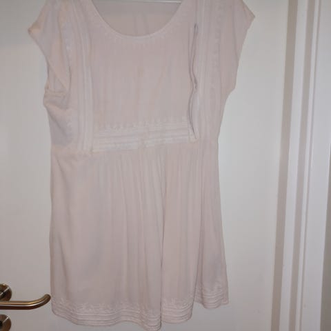 Mamalicious kjole for gravide i størrelse S. Kjolen er laget i polyester og har en hvit farge. Modellen har korte ermer, rund hals og markert liv som gir plass til voksende mage. Skjørtet er plissért og går til omtrent knelengde. Passer til bruk under graviditet ved både hverdags- og penere anledninger.