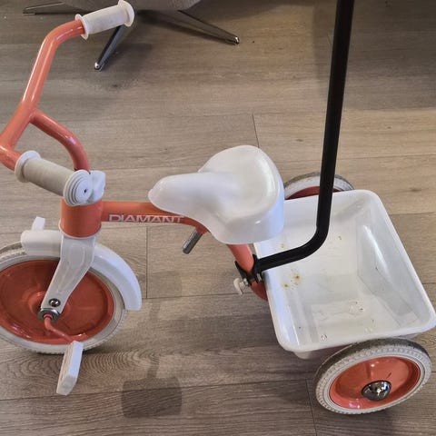 Trehjulssykkel med mulighet til å dytte bak. Godt brukt, men mye bruk igjen. Må hentes.