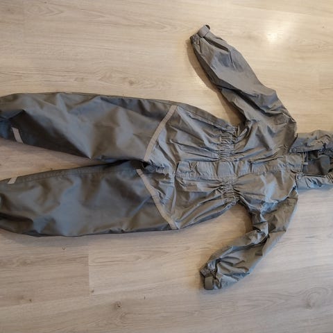 Superfin todelt parkdress fra Stormberg. Brukt vår-høst i tre sesonger (fra 4-6 år) av ett barn, jakken enda en sesong. Altså godt brukt, men likevel pent brukt: Settet er av imponerende kvalitet og holder i flere år til.