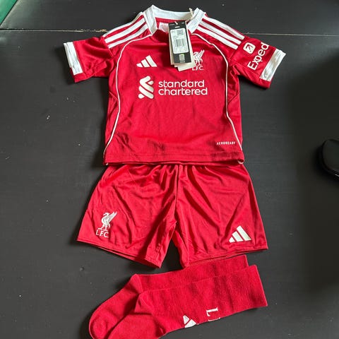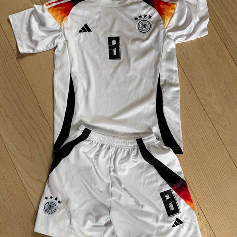 Adidas Ajax fotballdraktsett for barn i størrelse 98. Settet består av kortermet fotballdrakt og shorts i svart med gullfargede detaljer og Ajax-klubbemblem. Elastisk linning i shortsen for bedre passform. Egnet til fotball og annen fysisk aktivitet for små barn.