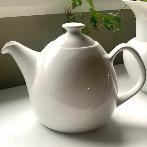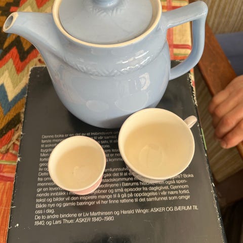 Figgjo tekanne og kopp hvit med pastellfargede striper porselen