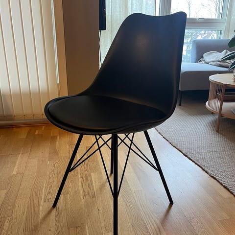 Selger 4stk svarte spisestoler samlet. 400 per stk, så 1600 totalt. Pris kan diskuteres. Usikker på merke da det ikke er synlig og de er nedarvet fra familie.