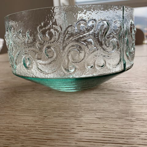 Design: Skandinavisk koboltblått glass fra midten av århundret med et relieffmønster.