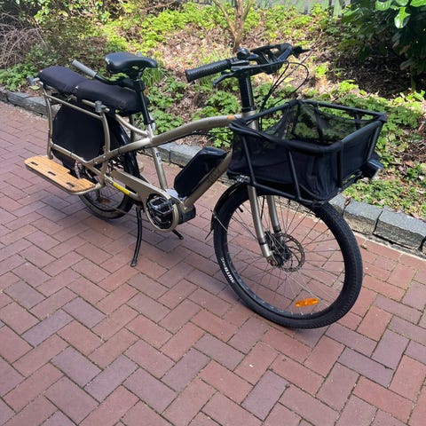 Svært praktisk longtail med lys foran og bak, lasteplan foran og plass til to barn bak.