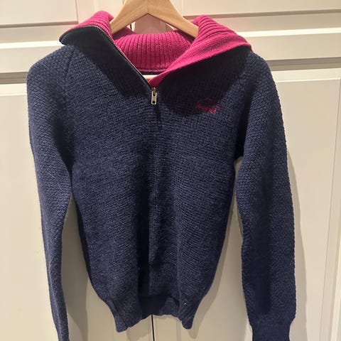 Selger ubrukt Vikafjell ullgenser for barn i størrelse 152 (10-12 år).. Genseren er grønn, 100 % ull, med høy hals og glidelås foran. Strikket struktur gir god varme og komfort. Unisex-modell som passer både gutter og jenter.