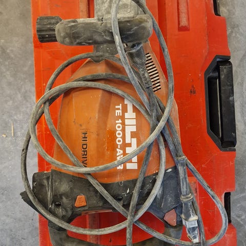 Hilti TE 500-AVR borhammer i rød farge. Elektrisk borhammer med kabel, egnet for meisling og boring i betong og murverk. Maskinen har sidehåndtak for bedre kontroll under arbeid og er konstruert for krevende bruk på byggeplass eller ved renoveringsarbeid.