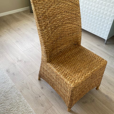 Kurvstol i rotting med armlener og høy rygg. Stolen har flettet konstruksjon og leveres med løs setepute i lys tekstil. Egnet som ekstra sitteplass i stue, vinterhage eller på overbygget uteplass. Klassisk rottingdesign som gir luftig uttrykk og lett vekt, enkel å flytte ved behov.