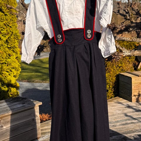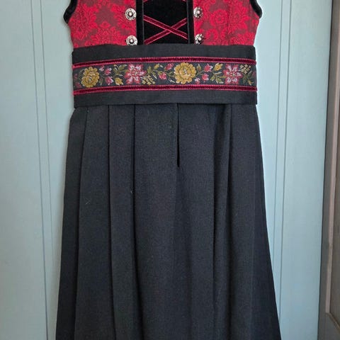 Det er lagt inn monn i vesten med ca 8cm på hver side så den kan tilpasses☺️ Skjørtet kan også forlenges i lengden med 15cm.