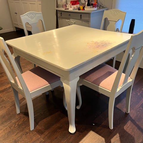 Gammelt bord kalt spillebord eventuelt kan stolene følge med eller selges for seg