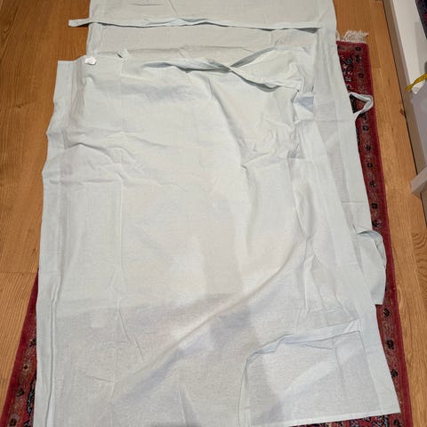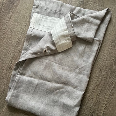 Gardinene er solbleket langs noen kanter og gis derfor bort gratis.