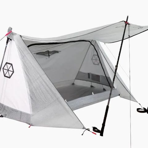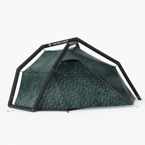 Heimplanet oppblåsbart telt i grå farge. Teltet har et ytre rammeverk som pumpes opp med medfølgende pumpe, noe som gir en selvbærende konstruksjon uten tradisjonelle teltstenger. Leveres med transportpose for enkel pakking og oppbevaring.