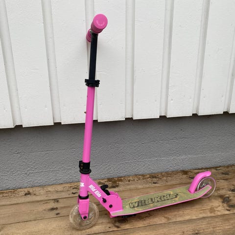 Halo sparkesykkel i rosa og hvit farge. Modellen har justerbart styre og brems på bakhjulet. Egnet for barn som ønsker en enkel og lett sparkesykkel til bruk på jevnt underlag som asfalt eller gårdsplass.