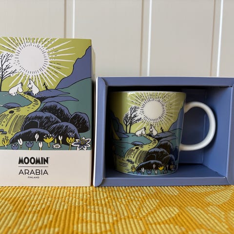 Dette er den eksklusive spesialutgaven Vår, utgitt for å feire Mumindagen 2024. Motivet viser Snusmumrikkens etterlengtede hjemkomst og de første vårtegnene i Mummidalen. Denne koppen ble produsert i et begrenset opplag og ble utsolgt i Finland allerede på lanseringsdagen.