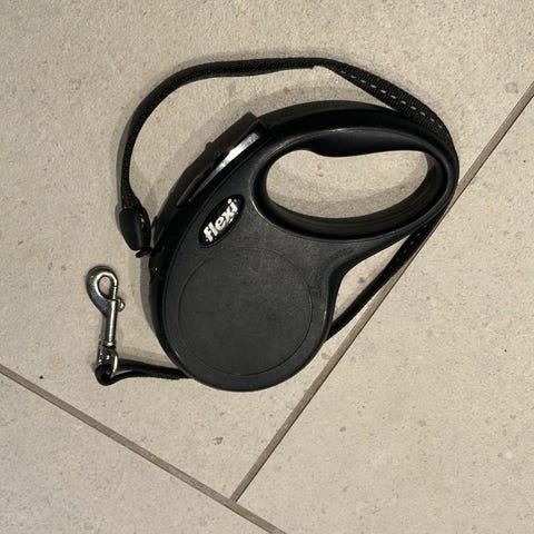 Flexi Line hundebånd, uttrekkbare modeller str L 5m. Ett bånd i rød og grå farge og ett bånd i svart med gul refleksflate. Egnet til lufting av hund der man ønsker regulerbar lengde på båndet.