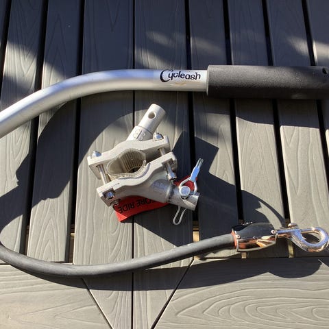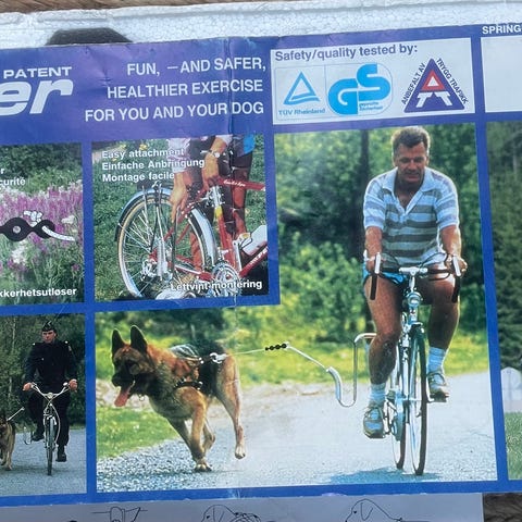 Springer sykkelfeste for hund. Metallfeste som monteres på sykkelrammen for å kunne ha hund i line ved siden av sykkelen. Inkluderer fjærarm og feste med bolter. Egnet for sykling med hund der man ønsker å holde hunden i trygg avstand fra sykkelen.