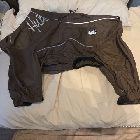 Hurtta Downpour Suit er en teknisk og komfortabel regndress til hund, utviklet for å gi maksimal beskyttelse mot regn, vind og søle. Regndressen dekker både kropp og ben, og er et ideelt valg for aktive hunder som ferdes ute i all slags vær – enten det er på tur, lek eller trening.