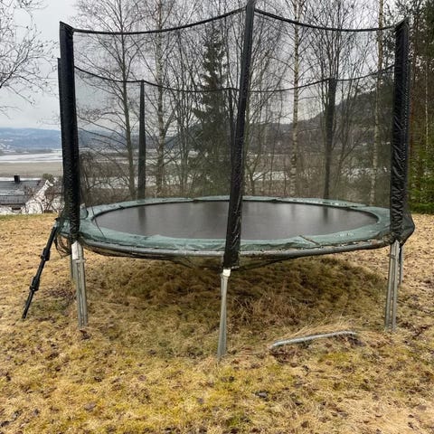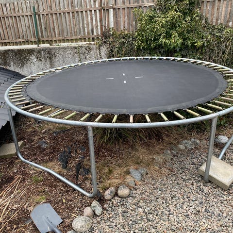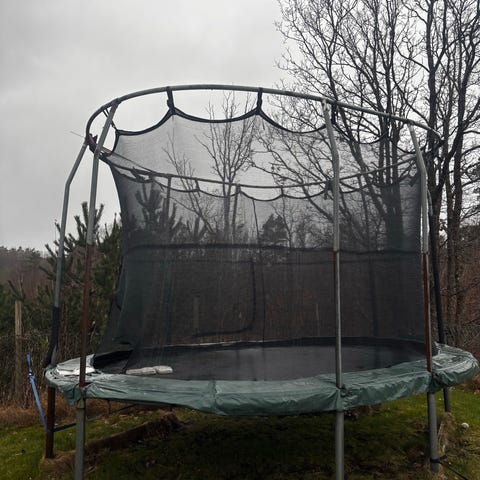 Trampoline gis bort mot henting. Må eventuelt demonteres av den som henter. 4,4m i diameter. Kom for en kikk og et prøvehopp.