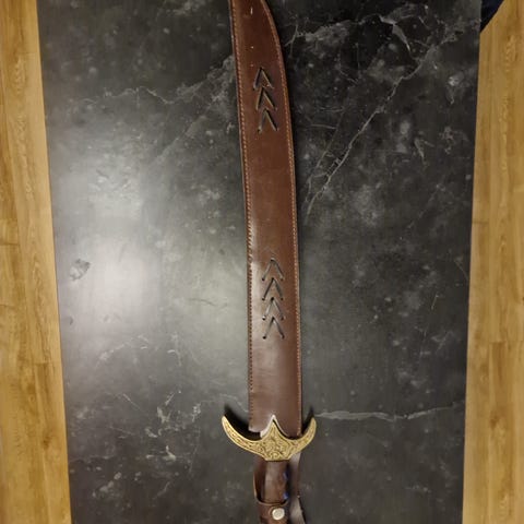 Thai Dha, Dah, asiatisk sverd, håndlaget, dekorativt, Sørøst-Asia, Thailand, Burma, samlerobjekt, veggdekor, kostyme, slire, treskjæring, messing