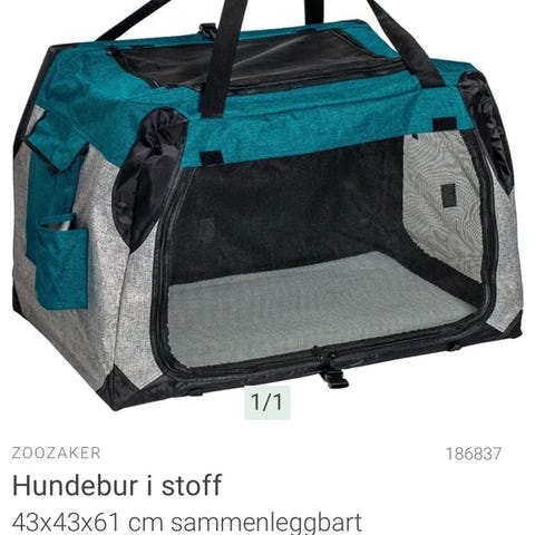 Frontdøren er i metallgitter med låsemekanisme. Fargekombinasjon i lysegrå og mørkegrå. Egnet som transportbur for hund eller andre kjæledyr, for eksempel i bil eller til kortere reiser. Buret står støtt på gulvet og har avrundede kanter for dyrets komfort.