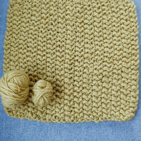 Hjemmestrikket tover sitteunderlag i 100% ull. Måler ca 45x45 cm. Strikket med stripemønster i hvit og grå.