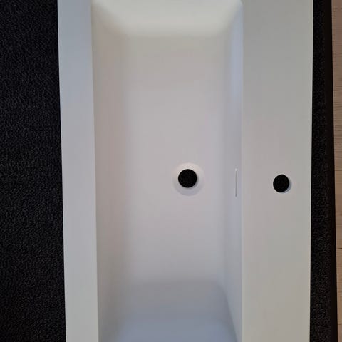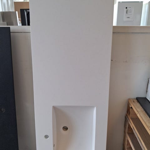 Marmorline Solid Surface badvask i modellen Arctic White 110. Vasken er laget i solid surface-materiale med 12 mm tykkelse og har matt utførelse. Den er beregnet for innfelling i benkeplate på bad, med integrert rektangulær kum og hull for armatur og avløp. Egnet for bruk på baderomsinnredninger der det ønskes en plan og sømliknende løsning mellom vask og benkeplate.