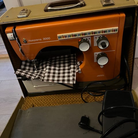3. 6360 modell, sydde helt fint til den begynte sy av seg selv og røyk veltet ut av motoren. Følger med koffert, kam satser A (i maskinen), B, C, D, utstyrseske, forlengelsesbrett, manual (riktignok til modell 6030). Fotpedal virker fin. Knappene virker ok men revers må sees på.