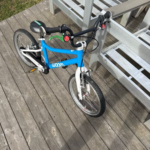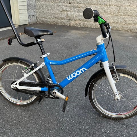 Sykkelen har oransje ramme med hvit gaffel og svarte skjermer. Utstyrt med håndbremser foran og bak, støtte, skjermer og komfortabelt sete tilpasset barn. Passer til barn som skal over fra mindre sykkel eller balansesykkel til tråsykkel med 16" hjul.
