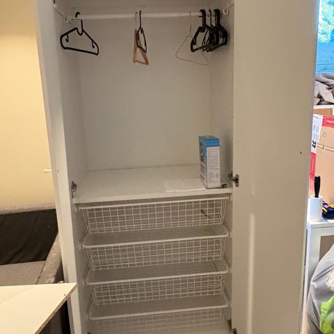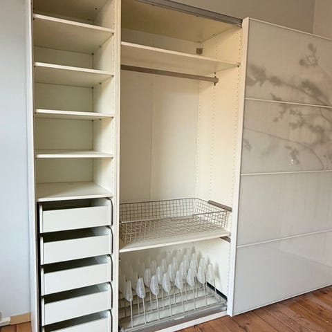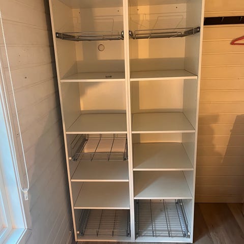 To stykker garderobeskap selges uten fronter / dører. I god stand. Må demonteres for transport. Pris er per stykk og inkluderer inventar. Hentes i Risør.