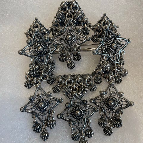Sølje/brosje sølv sorte stener