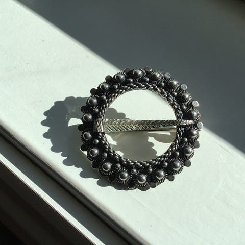 Den er kjempekul og kan brukes øverst i skjorten som en bunadsølje.