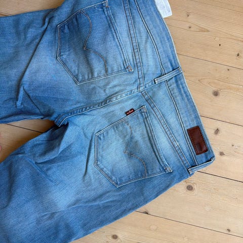 Levi's 610jeans for dame i størrelse M med livvidde W28 lengdeL32. Innerbenslengde 80cm.er i mellomblå denim laget av 93% bomull 7% elastan. Rett modell.Klassisk femlommersmodell med baklommer og beltehemper.