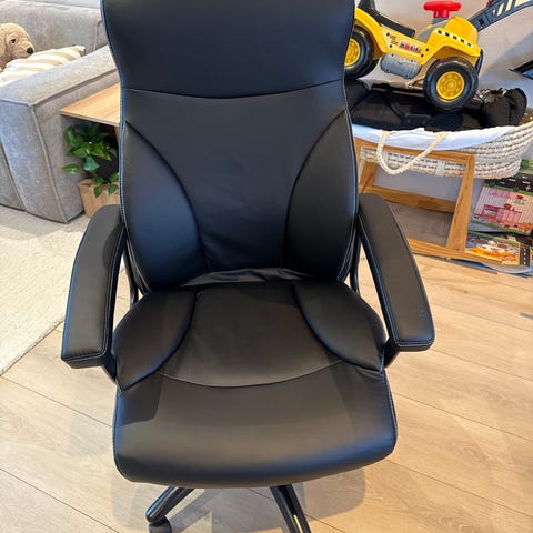 Selger min kokkedal kontorstol da dette kun skulle være en foreløpig stol frem til jeg fant en stol jeg likte. Dette er en av få kontorstoler som faktisk har en god høydeforskjell på justeringen.