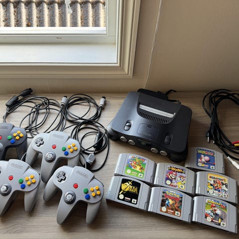 Nintendo 64 spillkonsoll med kontroll og Super Mario 64