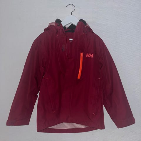 Gul Helly Hansen packable skalljakke/regnjakke/allværsjakke for barn i størrelse 140, unisex. Innside med meshfôr øverst for bedre ventilasjon. Refleksdetaljer og HH-logo på brystet.