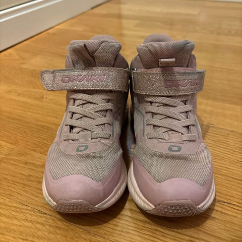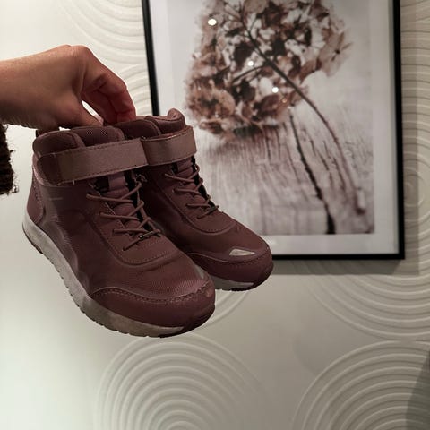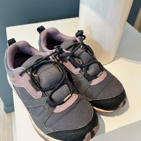 Viking rosa overgangssko i str. 32. Gore-tex. Skoene har mellomhøyt skaft og to borrelåsstropper som gjør dem enkle å ta av og på. Overdelen er i tekstil og syntetisk materiale i rosa farge, med polstret kant rundt ankelen for ekstra komfort. Yttersålen er i gummi med mønster for bedre grep. Passer til hverdagsbruk og aktivitet ute. En lett sko vi har vært veldig fornøyde med! Kan vaskes på 30 grader i vaskemaskin og dette er gjort før salg. Likevel noen sølemerker som ikke går bort, men ingen slitasje på sålene. Kun brukt en kort sesong av jente. Mye bruk igjen! Nypris ca. 1100,-. Røyk- og dyrefritt.