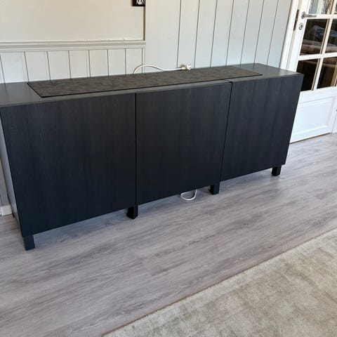 Stort Bestå skjenk fra IKEA. Med høyskap og vitrineskap. Pent brukt. Kjøpt Juli 2024.