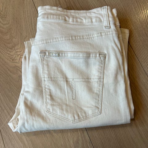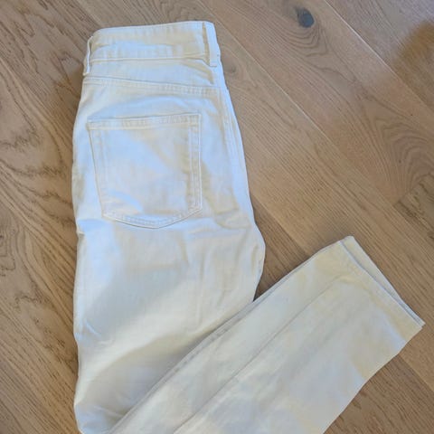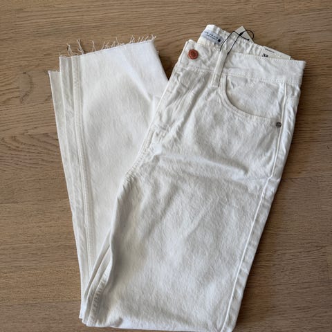 Fin hvit denim jeans fra Zara, str 40. Jun brukt 1 gang og er som ny. Innerbenlengde er 67 cm. Selges kr 250 pluss frakt