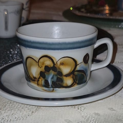 Kaffeskål uten tilhørende kopp fra Stavangerflint. Noe krakelering i glasuren. Brukt som skål til telys/kubbelys eller skål under små potter. Diameter 14 cm.