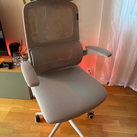 Lys grå gamingstol.