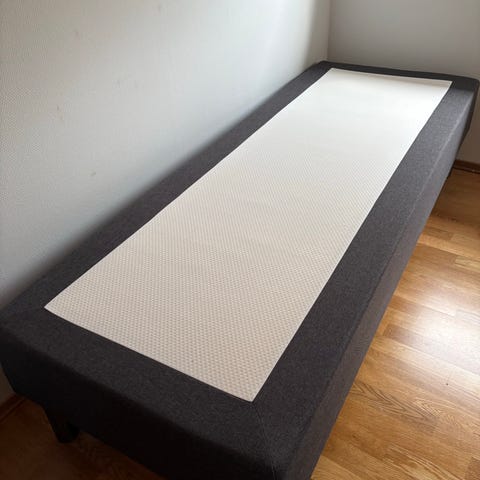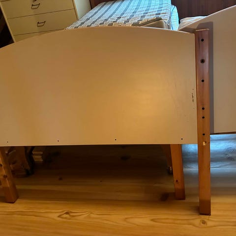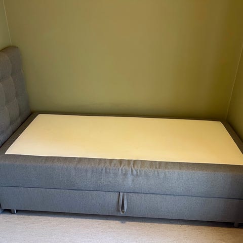 Sengen er i god stand, det er en liten flekk, men den kan vaskes bort. Beina kan også tas av eller skrus på.