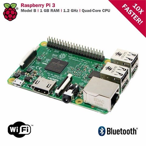 Raspberry Pi 3 Model B premium kit mikrodatasett. Settet inneholder en Raspberry Pi 3 Model B og tilhørende strømforsyning, levert i original emballasje. Egnet som kompakt datamaskin til hobbyprosjekter, programmering, mediesenter eller andre elektronikkprosjekter der en liten enkortsdatasmaskin er nødvendig.