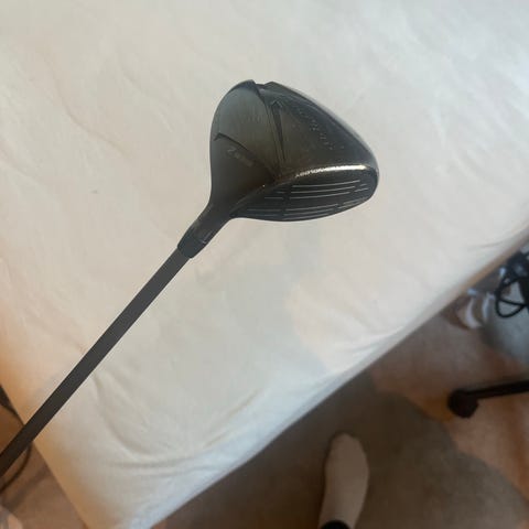 Callaway Rogue 3-wood med Stiff skaft og midsize grep. Noen merker oppe på køllehodet, ingen påvirkning på spillet.