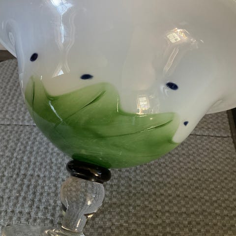Signert Kari Ulleberg glassvase m/grønn bunn